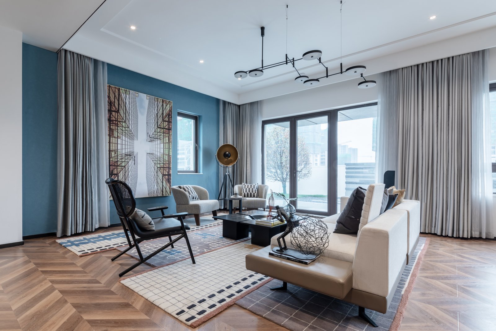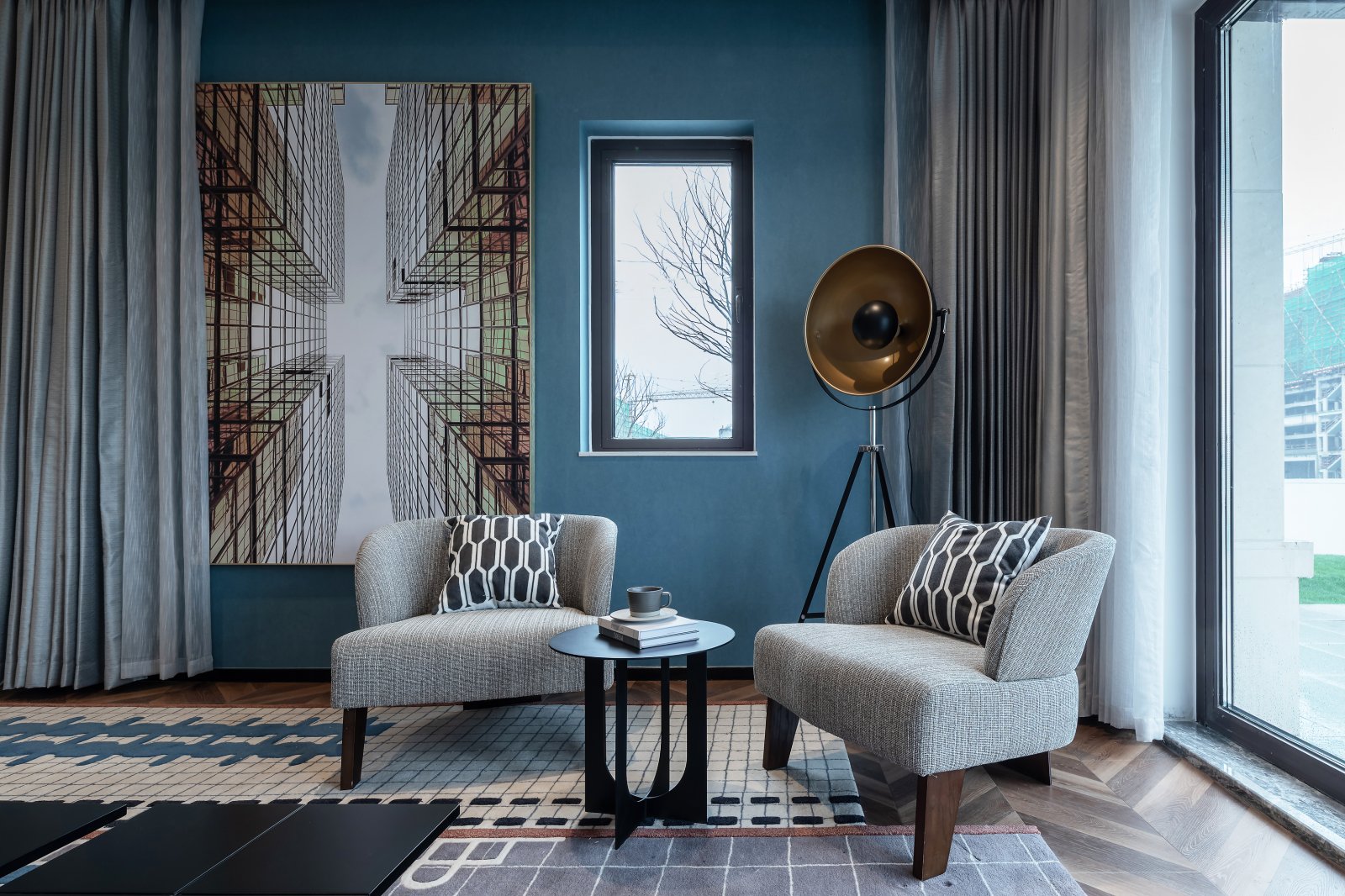 设计师抛开复杂因素重点运用点、线、面的建筑元素,在冲突与和谐的矛盾中将元素打散重构,在简约理性的基础上做适当处理。