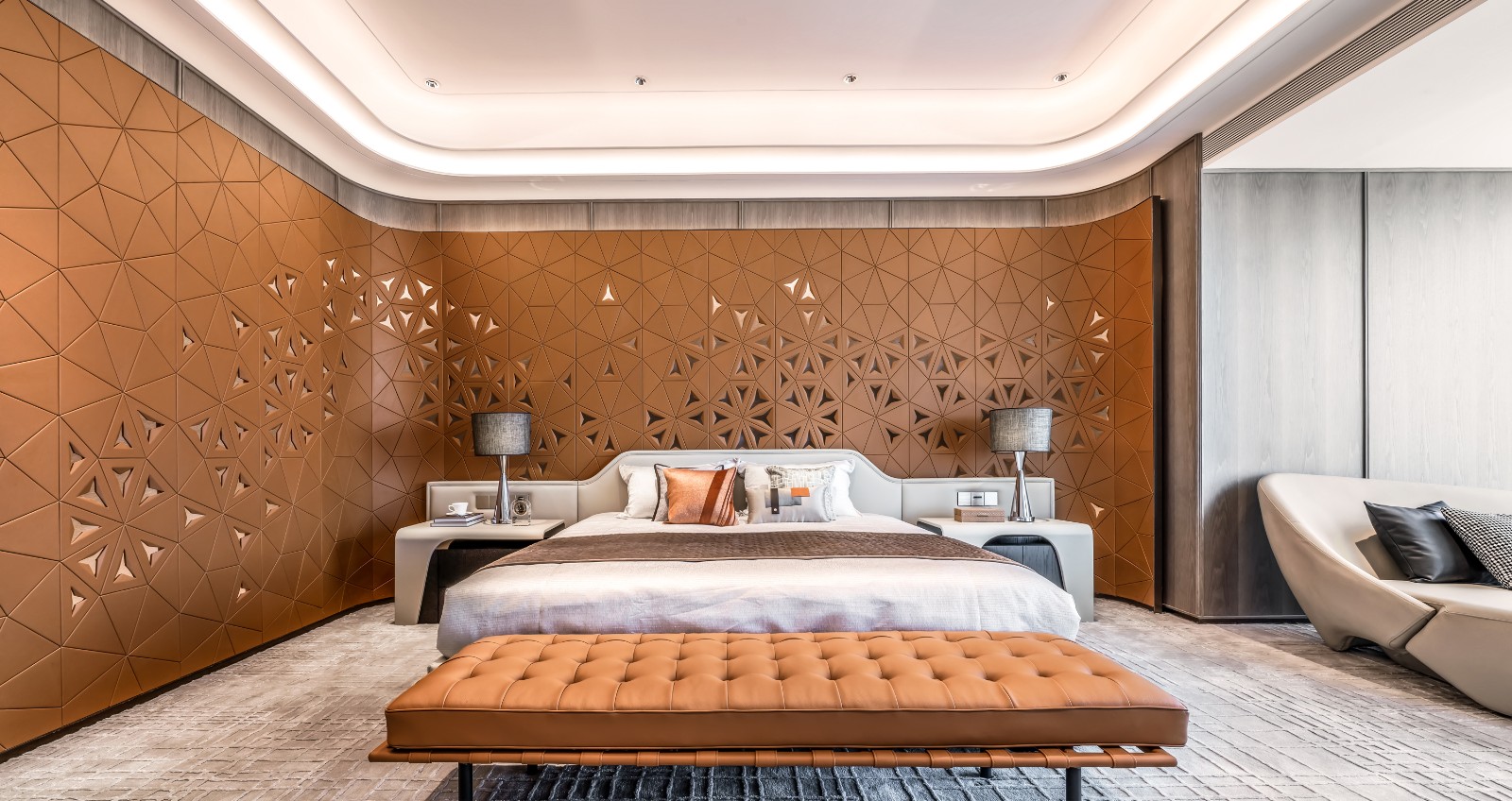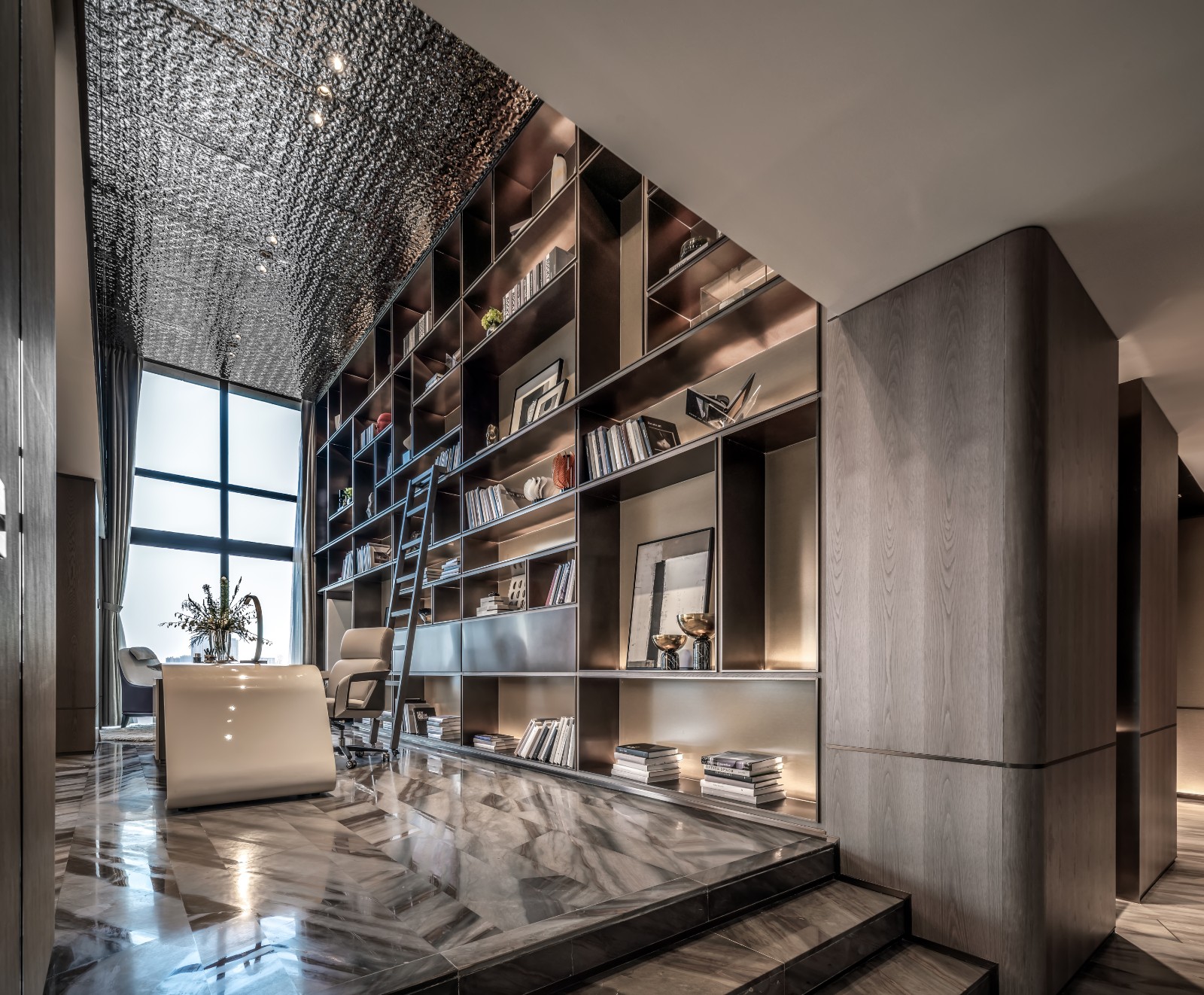 该项目是温州一幢517m²的高层住宅。设计师借鉴星级酒店的空间营造手法,创造出一种有趣、感知、被认可的顶级豪宅空间体验。