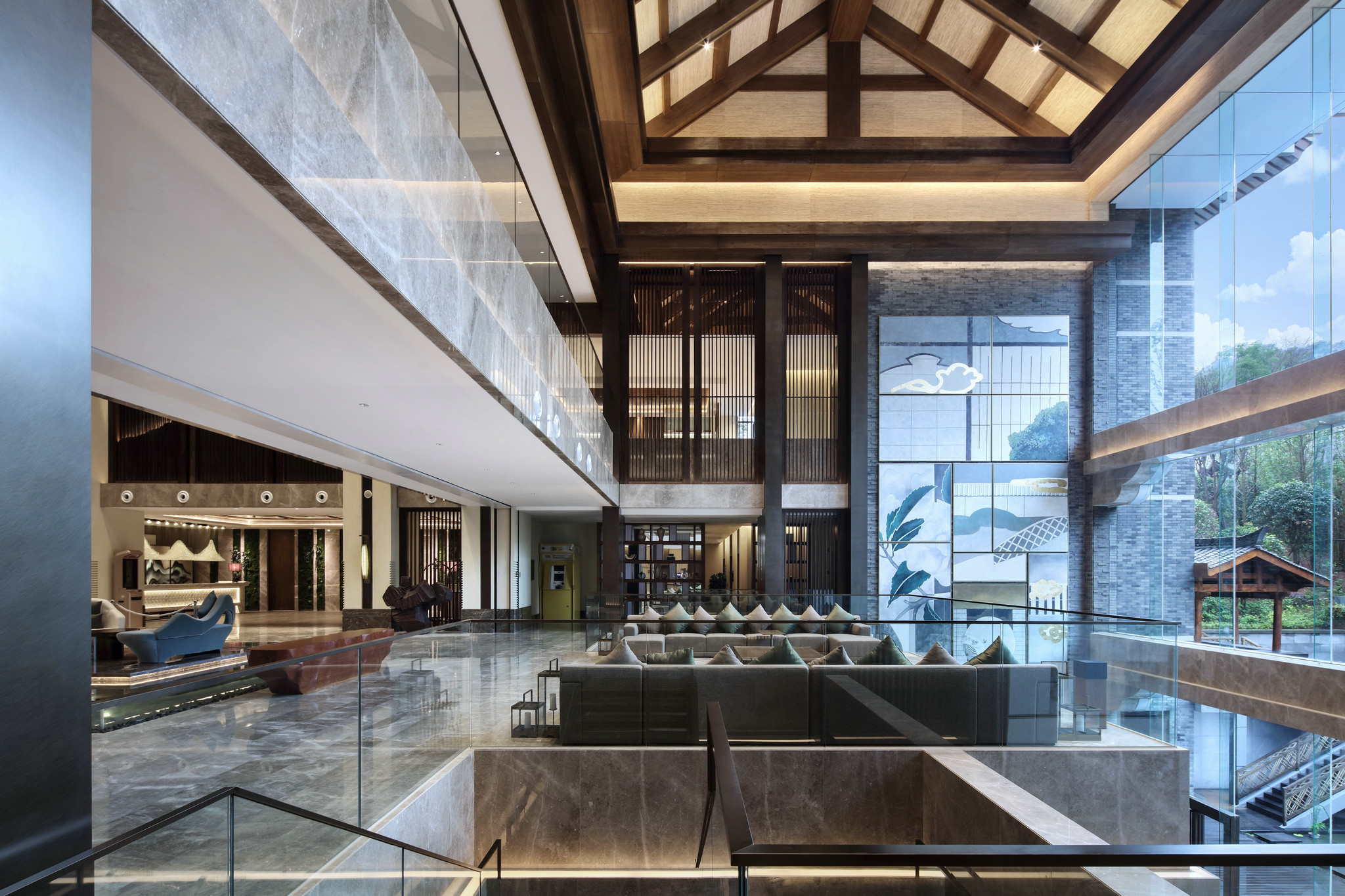 青城山尊酒店的室内设计、照明设计、艺术顾问以及标识设计都由Studio HBA一体完成,承载着「隐秘奢华」理念,通过充满创意和灵性的艺术布局和空间营造,把握抑与扬的节奏变换,在错落间,塑「曲径通幽、柳暗花明」的意境,造「世外桃源」式的环境。