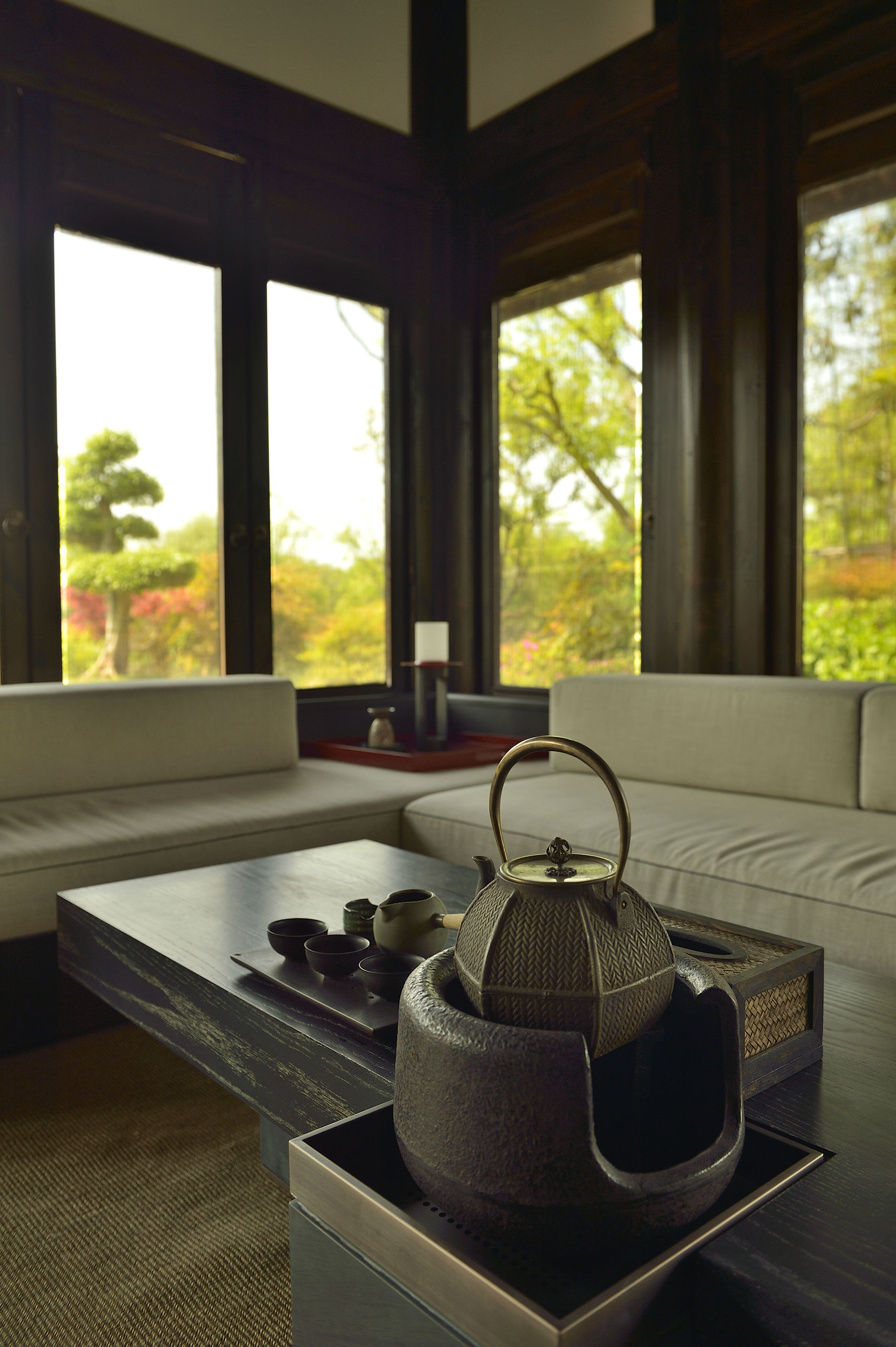 室内空间的序列,不设实体隔断,仅透过装饰自然过渡。 将床榻、卧具、浴池均面向风景,带来深度的沉浸体验。 晨起、闲坐、品茗、沐浴…… 每一个瞬间,都在风景簇拥与环抱大景小景之间。     卡纳设计 - 所见西溪度假酒店| - 11