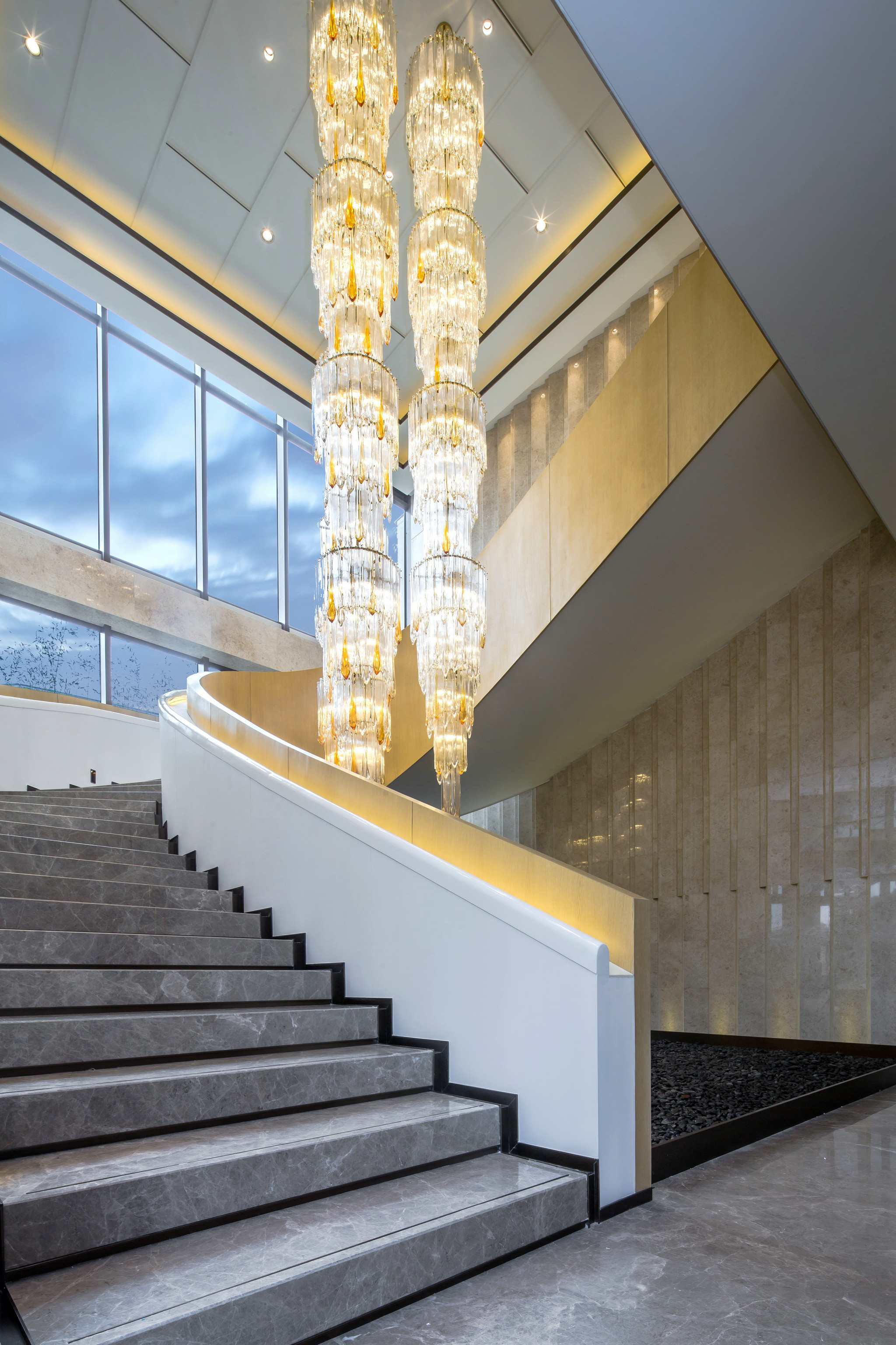 水晶与水晶之间保留着的缝隙,灯光洒下来通透无比,就像流星落入土壤。总有一天,会以光的形式,回归地面。一地碎光我涌上心头的思念,却铸成这水滴般的温柔。   品伊设计广州天河售楼营销会所| - 7