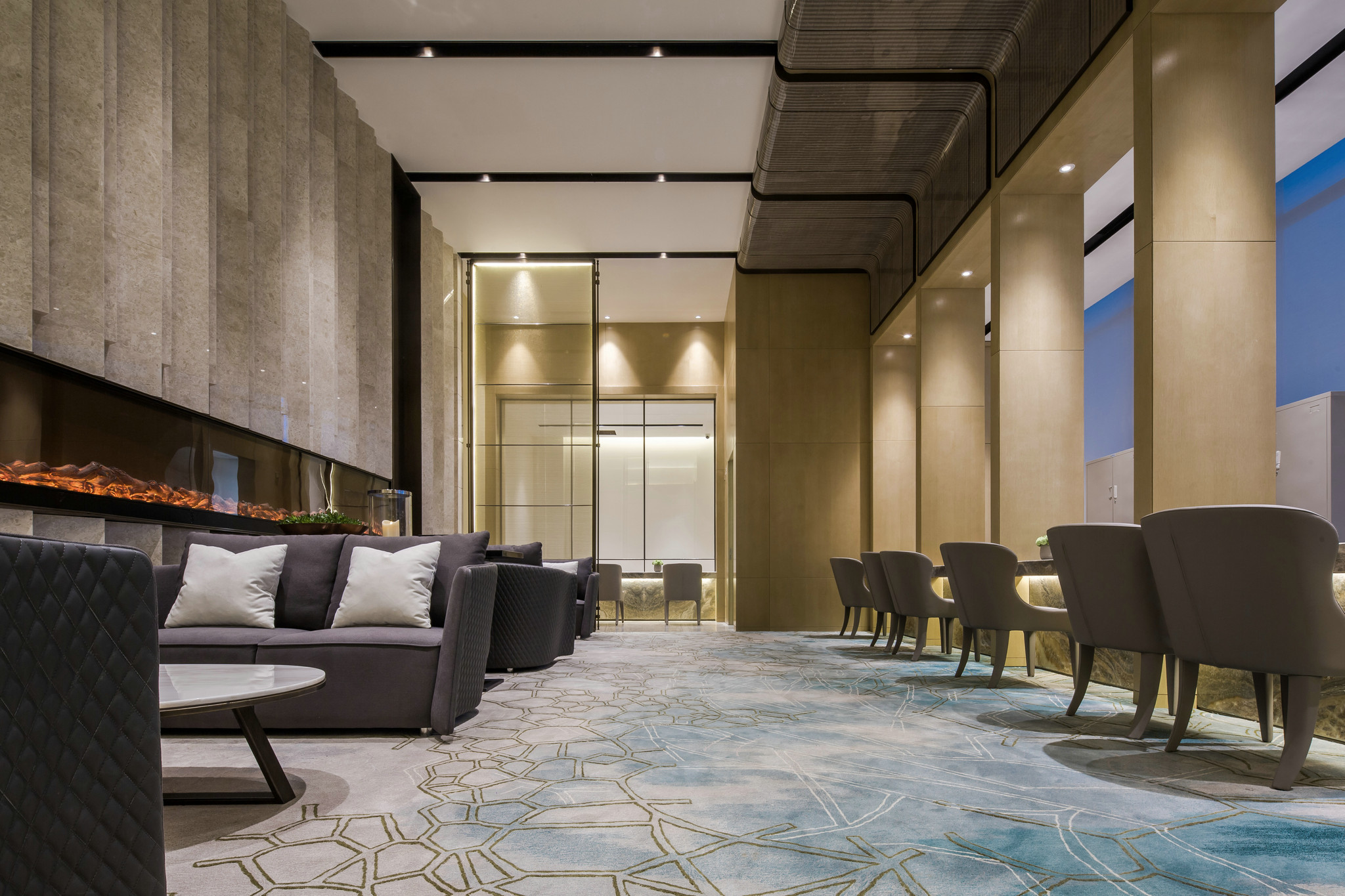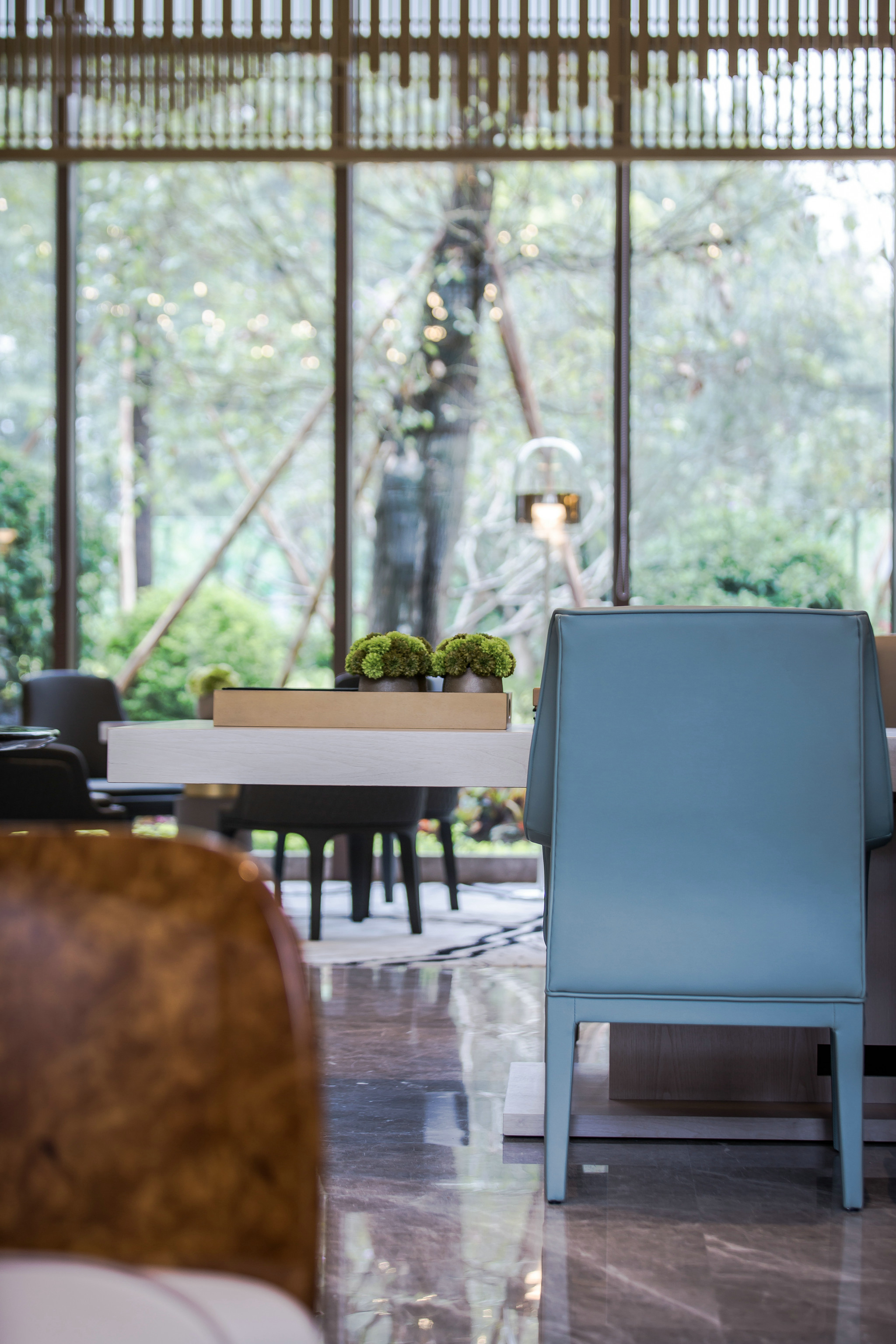 蓝色的精灵在空间中像一首空灵的歌, 我幻想自己穿着漂亮的晚礼服优雅的走进去,远远听到的是动人直击心灵的音乐,像《爱乐之城》中女主米娅见到正在弹钢琴的塞巴斯蒂安,眼神中流出的期待与美好,我想在这生活的光里,人们的爱里,见到你 。     品伊设计广州天河售楼营销会所| - 5