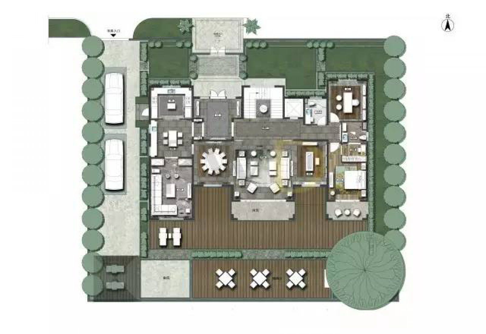 一个可以每天度假的地方,更加符合当代人的生活方式,置身空间中,得以摆脱掉车水马龙的喧嚣嘈杂,这是一个被大自然环抱的氛围,难能可贵的感受远不能用画面去描述,如果不能切身体会这份震撼,我们只好用“度假作息的语言”来作一份由设计牵引的完整表述。 F1客厅、KTV室自由活动时间,与男主人一同来这里度假的几个朋友过来串门。而女儿和其中同龄的一个女生则在西厨旁的KTV室K歌,边沏一壶花茶款待朋友,沙发墙上以独特铁艺勾勒的江南水乡装饰画还得到她称赞。