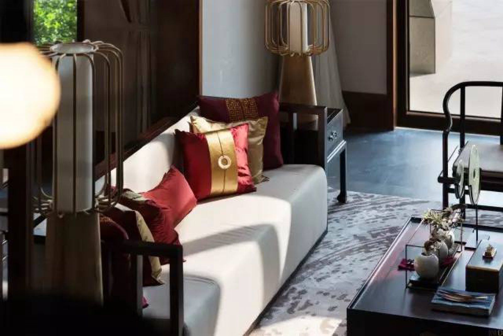 主要用材:白金砂大理石、编织科技木、水墨地毯、花鸟刺绣、皮革、墙纸