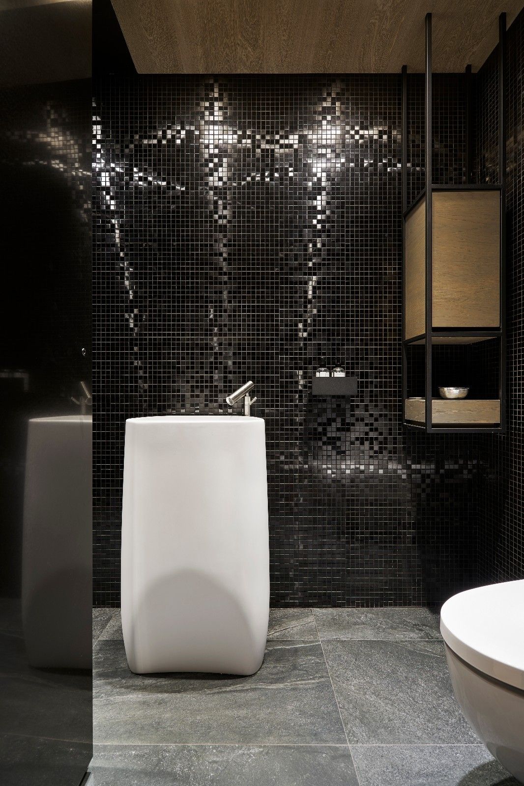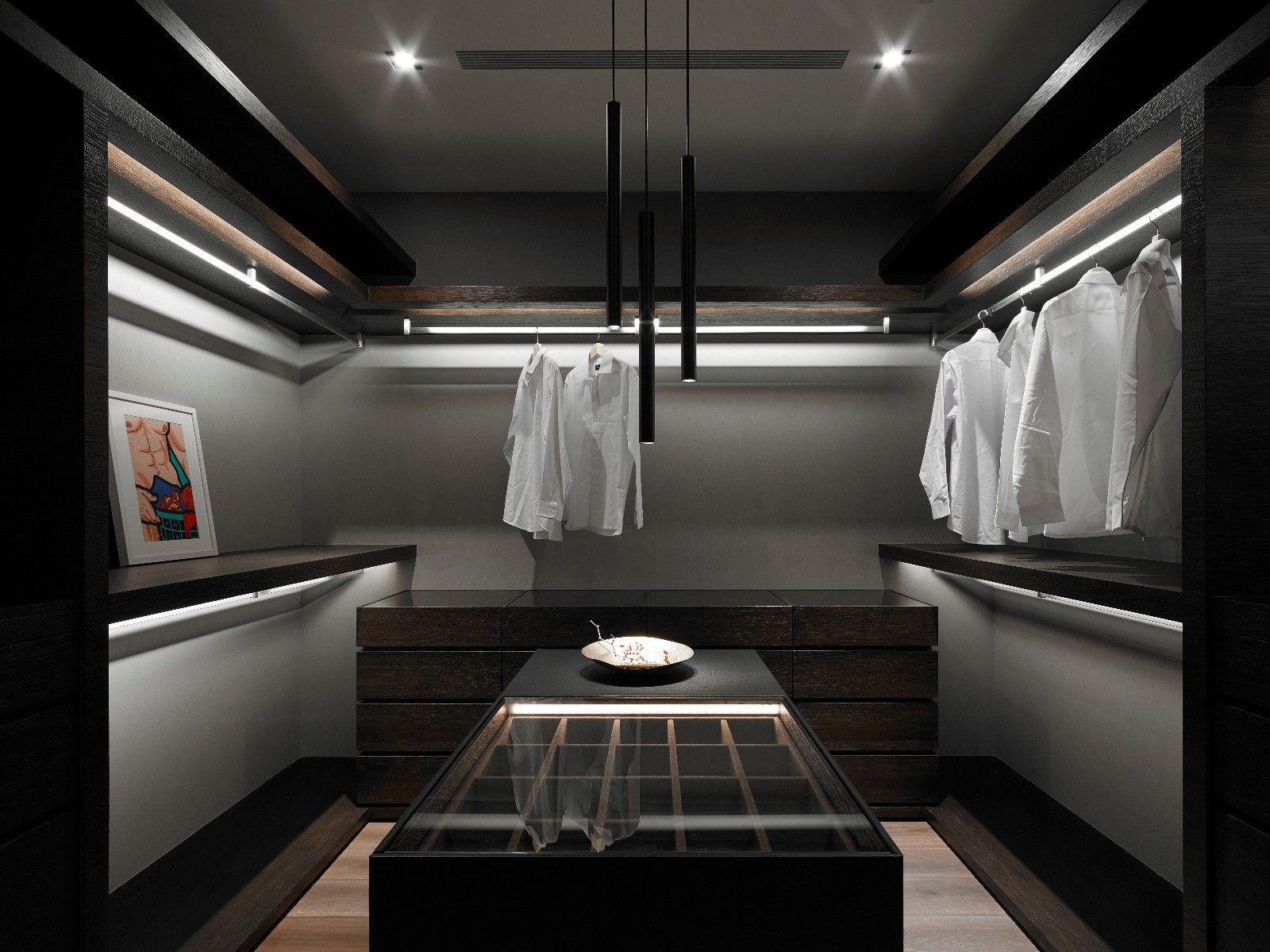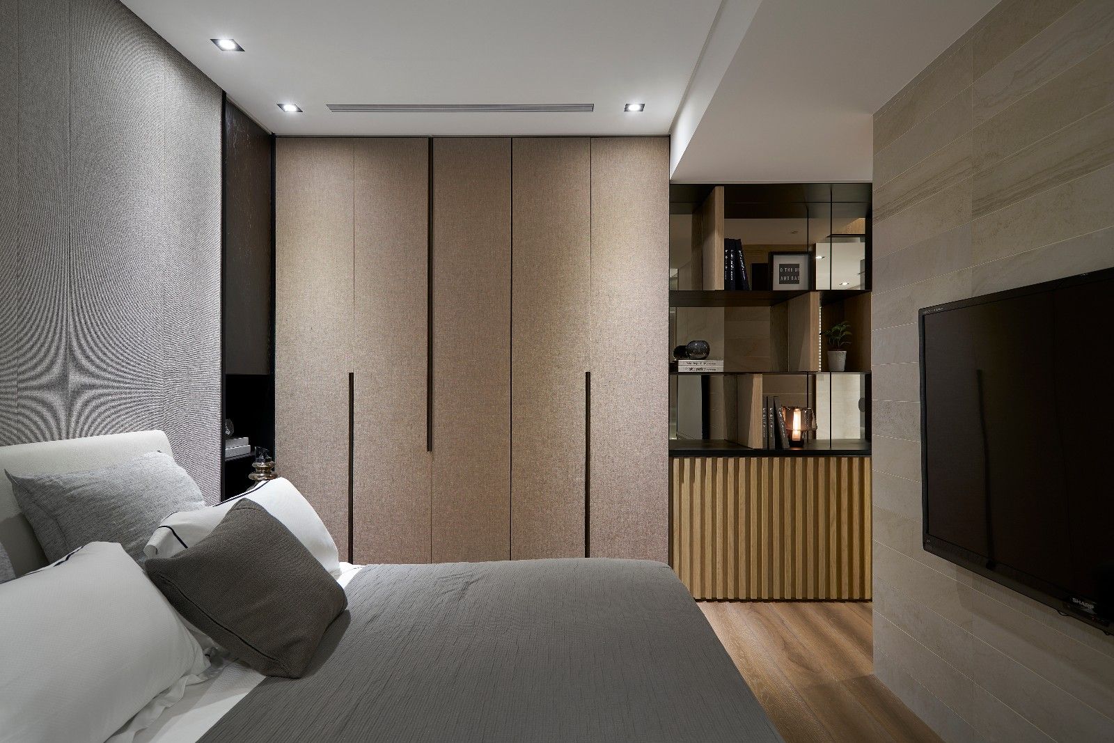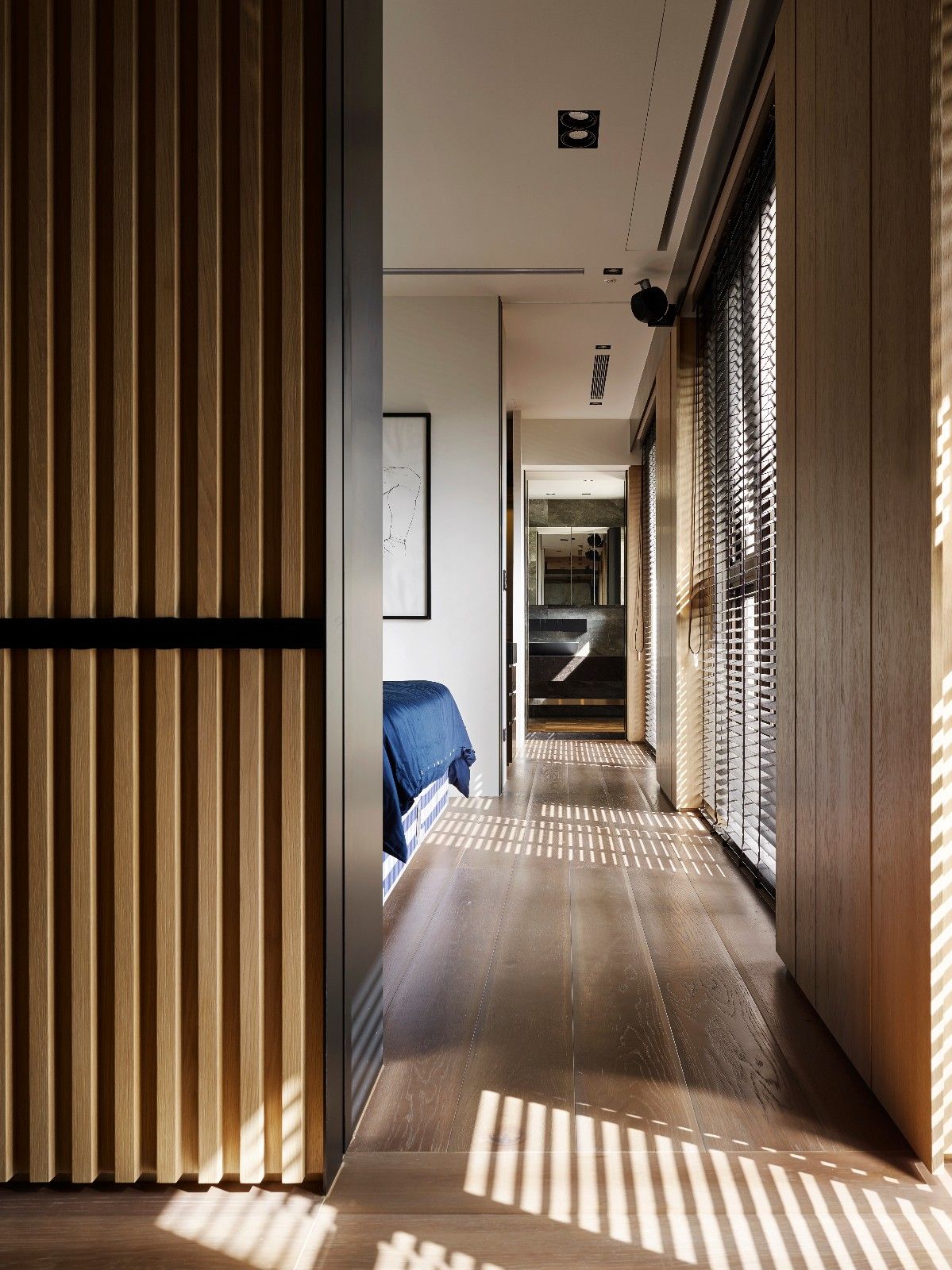 搜模型材质的语汇界定空间的量体 对比量体错层堆栈沉稳与律动相互交融线条贯穿延伸平衡空间重量 -场域界定置入两空间量体使开放场域自然而成,以材质线条与灯光分界空间量体,增添原本一分为三的空间场域,形成另一独特区域。 -量体划分空间一分为二,一边以单一素材建筑手法延伸空间深度。另一边以材质渐变方式减化量体的存在感;暗喻空间的界定,错落的光跟影让空间本质交错流动。 -引光入室光:主空间在规划上运用基地条件,采用垂直动线;引光入室。影:延续性空间,灯光透过材质错层散布在空间之中,反射的光跟影,营造空间趣味性。 -质空间以石、木润色镀钛包覆量化空间透过反射性材料,延续材料本身的质;因反射交叠,传递空间多变的生活面向