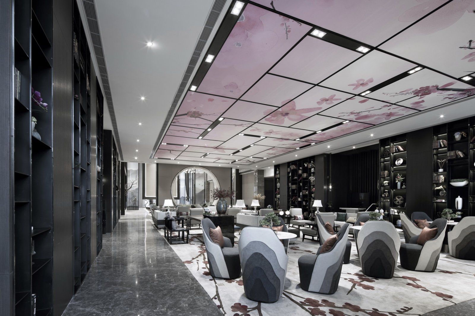 搜模型伊派设计在面对此项目时,并不急于寻找其在视觉呈现上的多种可能,而是通过两次文脉寻源之旅,去挖掘项目所应承载的历史文化气息以及与现代城市发展相应的生活理念,我们一面对其两千年的历史文化进行一次回顾之旅,试图从城市记忆中追寻让这座城市熠熠生辉的精神内核;一面通过速写城市群像进行一次探索之旅,塑造更贴近人们憧憬的人居环境状态。最终,关于常德生态智慧城项目,伊派设计决定围绕打造现代桃花源而一一呈现。对于本案总体布局规划,灵感来源于古代深宅大院的规制,效仿三进院落对空间层次进行视觉与功能的划分及差异化处理,从前到后分别有前厅、中厅、正厅,外加文化展示区及书法VIP室,让观者在参观时感受到递进式的尊贵感,于潜移默化中传递理想人居概貌下现代隐士的生活理念。 前厅▼