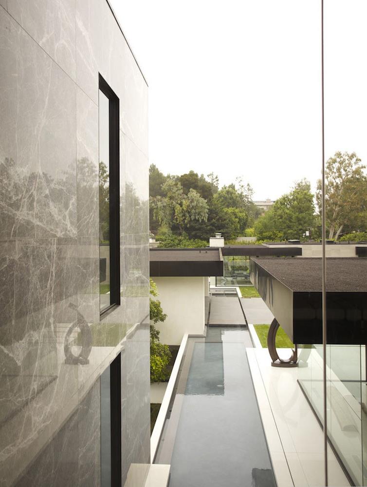 这座面积位1700平方米的住宅由Minotti L.A. 精心打造,其位于洛杉矶高地上的 Bird Street,坐拥马利布与卡塔琳娜岛美景,展现出难得一见的优雅风范。除了带游泳池的主建筑外,还有另一个涵盖游泳池、健身房与车库,专为客人们准备的住宅。以加州“Case Study”实验住宅为灵感,住宅整体以典型的现代风格呈现,采用无比高贵的大理石覆盖建筑表面与浴室,奢华的白色石英铺就地板,华贵的灰色石英打造墙面。室内设计方面,负责人——来自 Minotti L.A.的 Mary Ta 自由发挥创意,大量运用 Minotti 系列产品:选用 Williams 与 Hockney 沙发、Calder 茶几装点大客厅,Claydon 餐桌、Mills 小号靠椅、Harvey 置物柜装点饭厅,Hamilton Islands 沙发、Portofino 靠椅、Capri 矮凳、Caulfield 与 Bellagio 茶几布置家庭影院。Tatlin-Cover 床具主宰卧室,搭配 Harvey 床头柜与 Flynt 长凳。