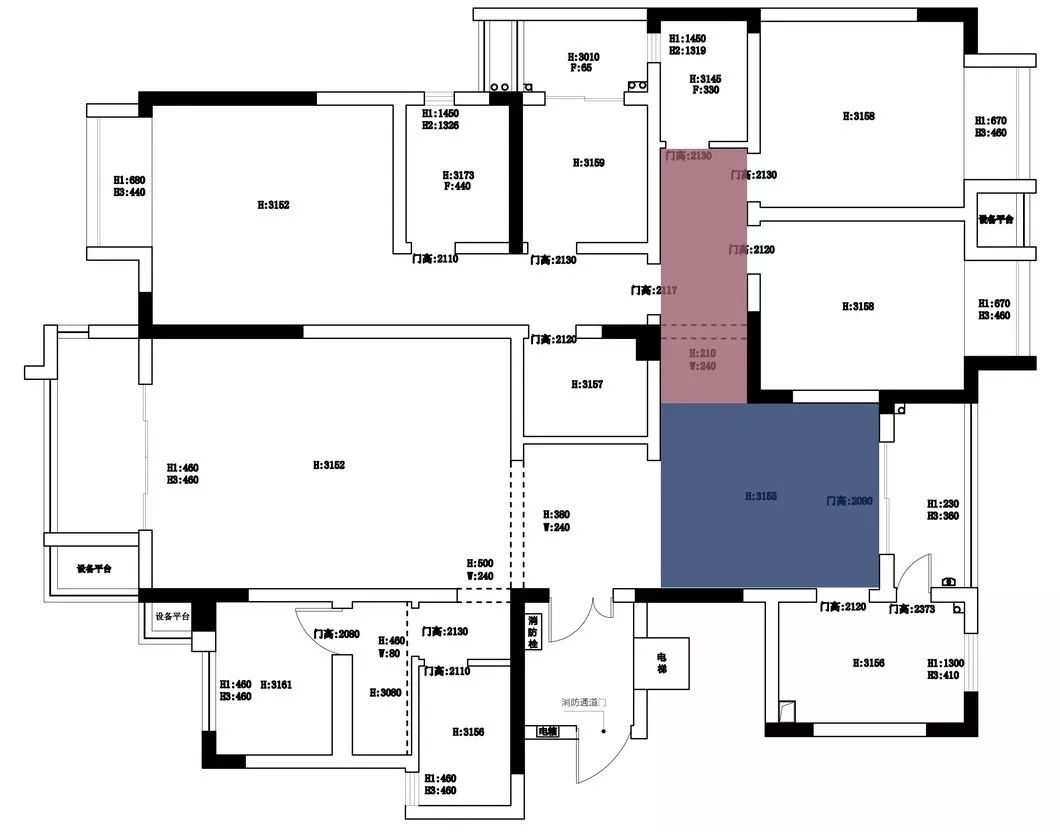 空间原始层高3.2米,为了让法式味儿更纯,我们保留了尽可能高的层高,未选择中央空调(PS;没有选择中央空调是因为挂机柜机使用方便,平时老年人在家呆的时间长,他们不常用空调)所以预算又在这里节约了一大块,将地暖和贴砖除去,最后完成面在3.1米的层高(非常喜欢这样的层高,没有这个层高,如何体现这个味道)